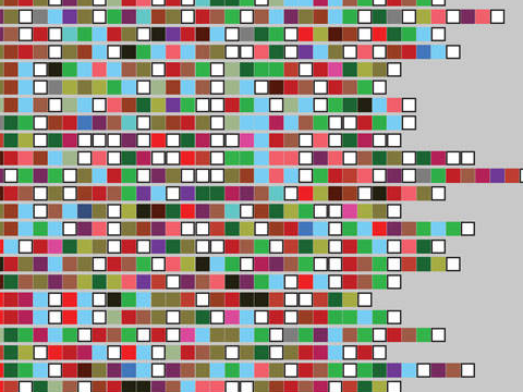 Using a simple Javascript routine and Illustrator I've been taking everyday text from emails, news headlines, and even works of literature and converting them into abstrated landscapes of colored blocks.